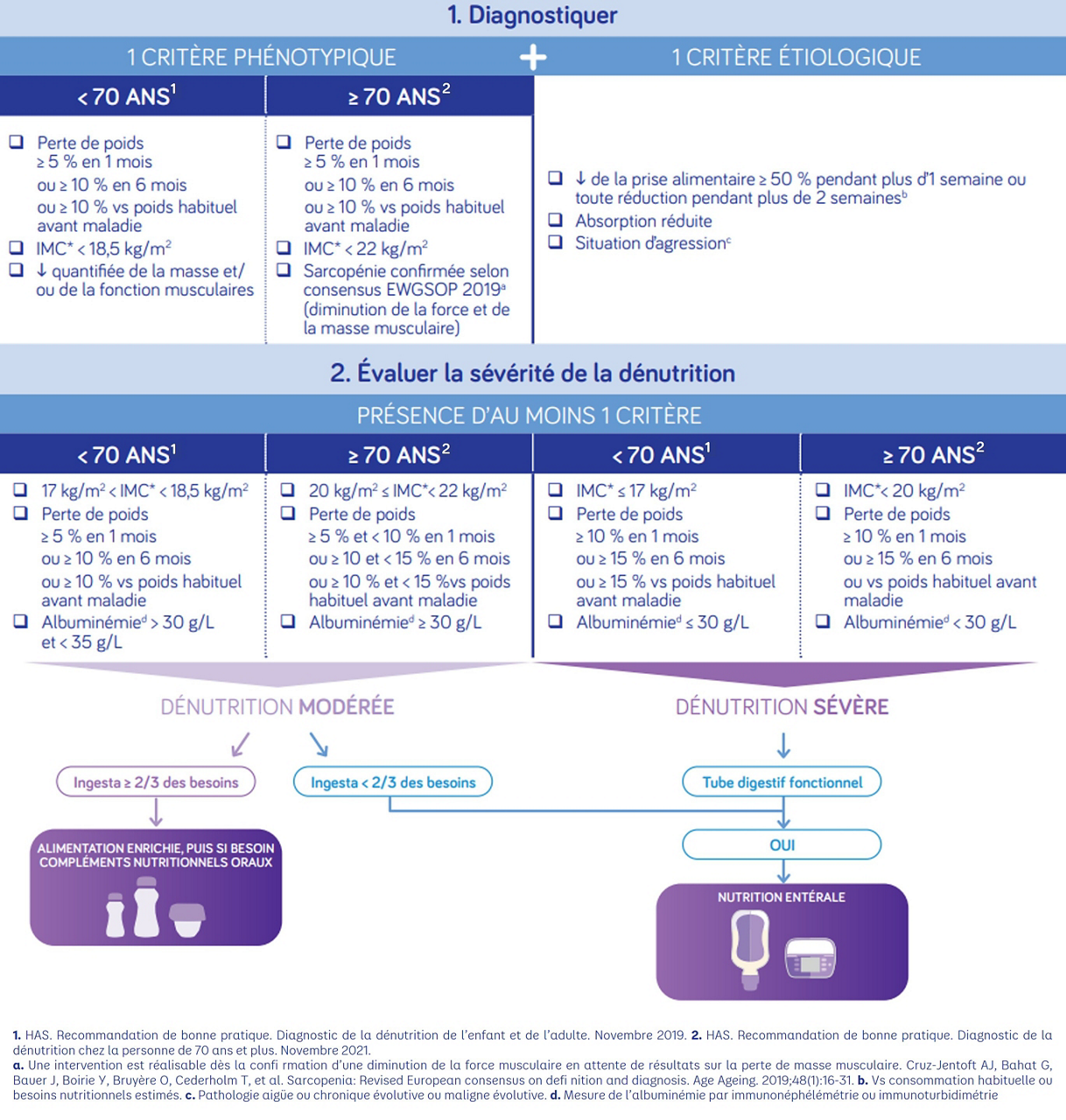 1. HAS, 2021. Diagnostic de la dénutrition chez l’enfant, l’adulte, et la personne de 70 ans et plus.
