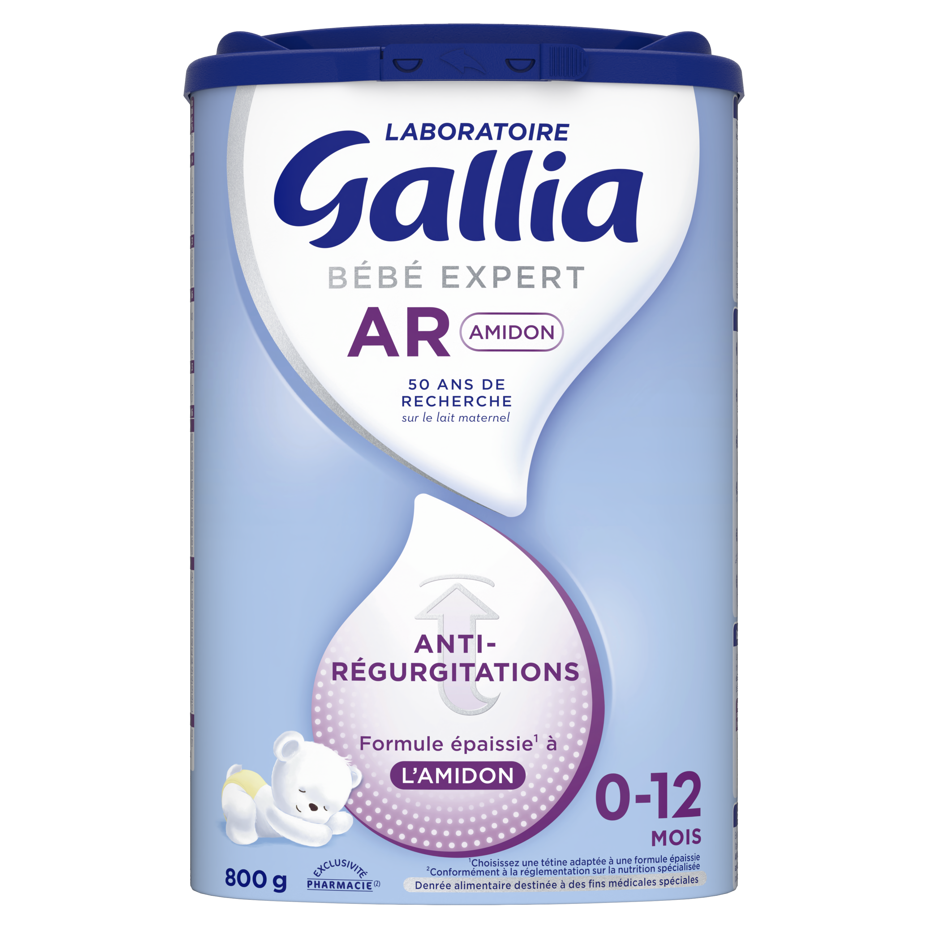 Pourquoi donner BÉBÉ EXPERT AR Amidon à votre bébé ?Le Laboratoire Gallia a développé BÉBÉ EXPERT AR Amidon pour répondre aux besoins nutritionnels en cas de régurgitations persistantes des bébés nés à terme non allaités de la naissance à 12 mois.Cette formule contient de l'amidon, un ingrédient qui continue de s'épaissir dans l'estomac de bébé, action essentielle en cas de régurgitations persistantes.Les conseils des experts du Laboratoire Gallia :- Choisissez une tétine adaptée à une formule épaissie. - Privilégiez la prise du biberon dans un environnement calme, marquez des pauses et aidez bébé à faire des rots. - Favorisez des vêtements confortables et des couches pas trop serrées.