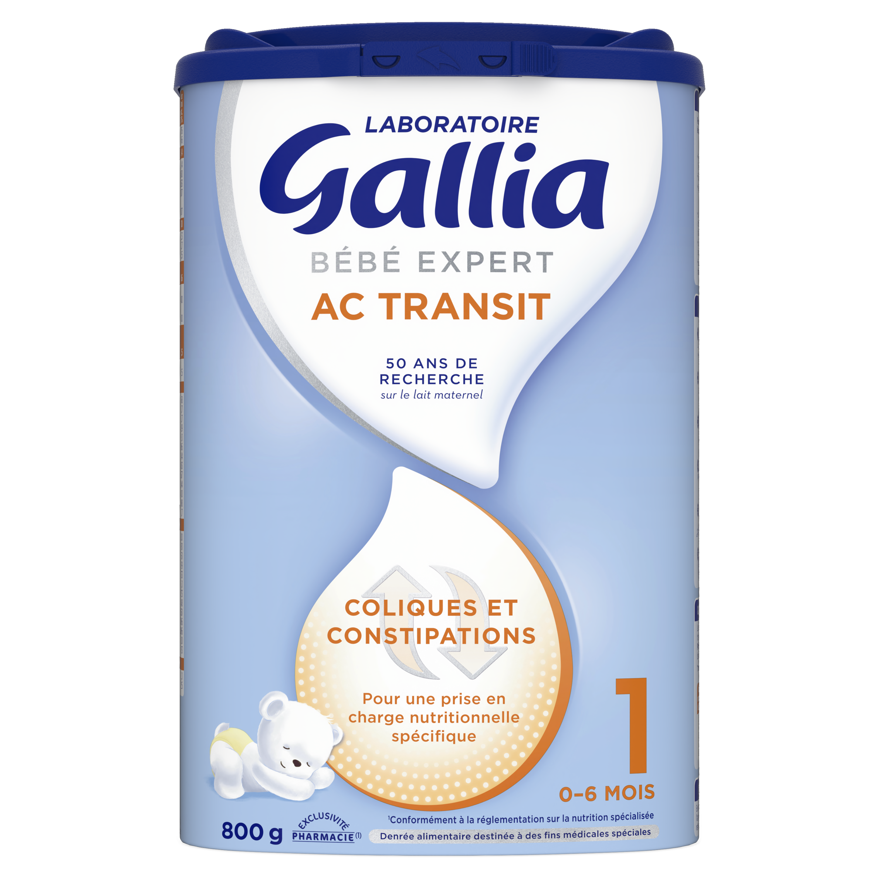 Conformément à la réglementation sur la nutrition spécialisée.Denrée Alimentaire Destinée à des Fins Médicales Spéciales.En raison de sa formulation, BÉBÉ EXPERT AC TRANSIT 1 peut entraîner une modification transitoire de l'aspect et de la fréquence des selles de votre bébé sans qu'il faille s'en inquiéter.
