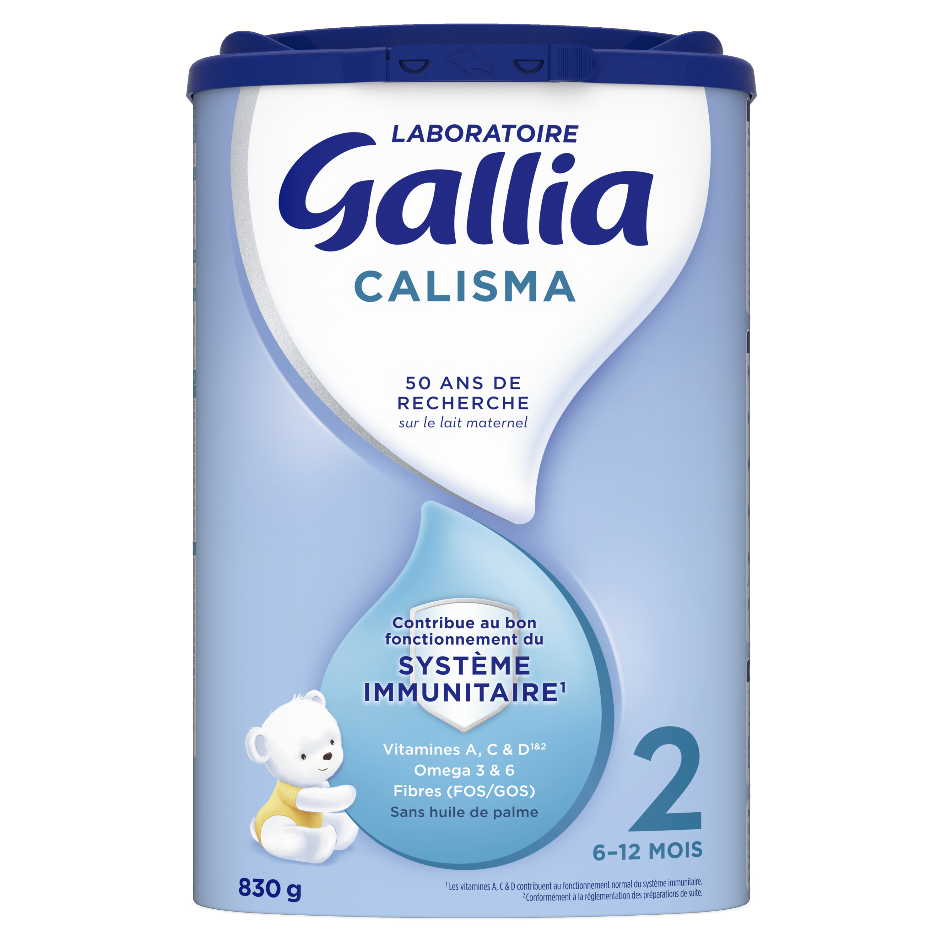 Pourquoi donner Calisma 2 à votre bébé ? Calisma 2 contient des ingrédients importants que l’on trouve dans le lait maternel, pour accompagner votre bébé au quotidien, dès 6 mois jusqu’à 1 an. S'appuyant sur 50 ans de recherche sur le lait maternel, le Laboratoire Gallia a développé cette formule pour accompagner bébé et contribuer à répondre à ses besoins nutritionnels spécifiques1. 1. Conformément à la réglementation des préparations de suite.