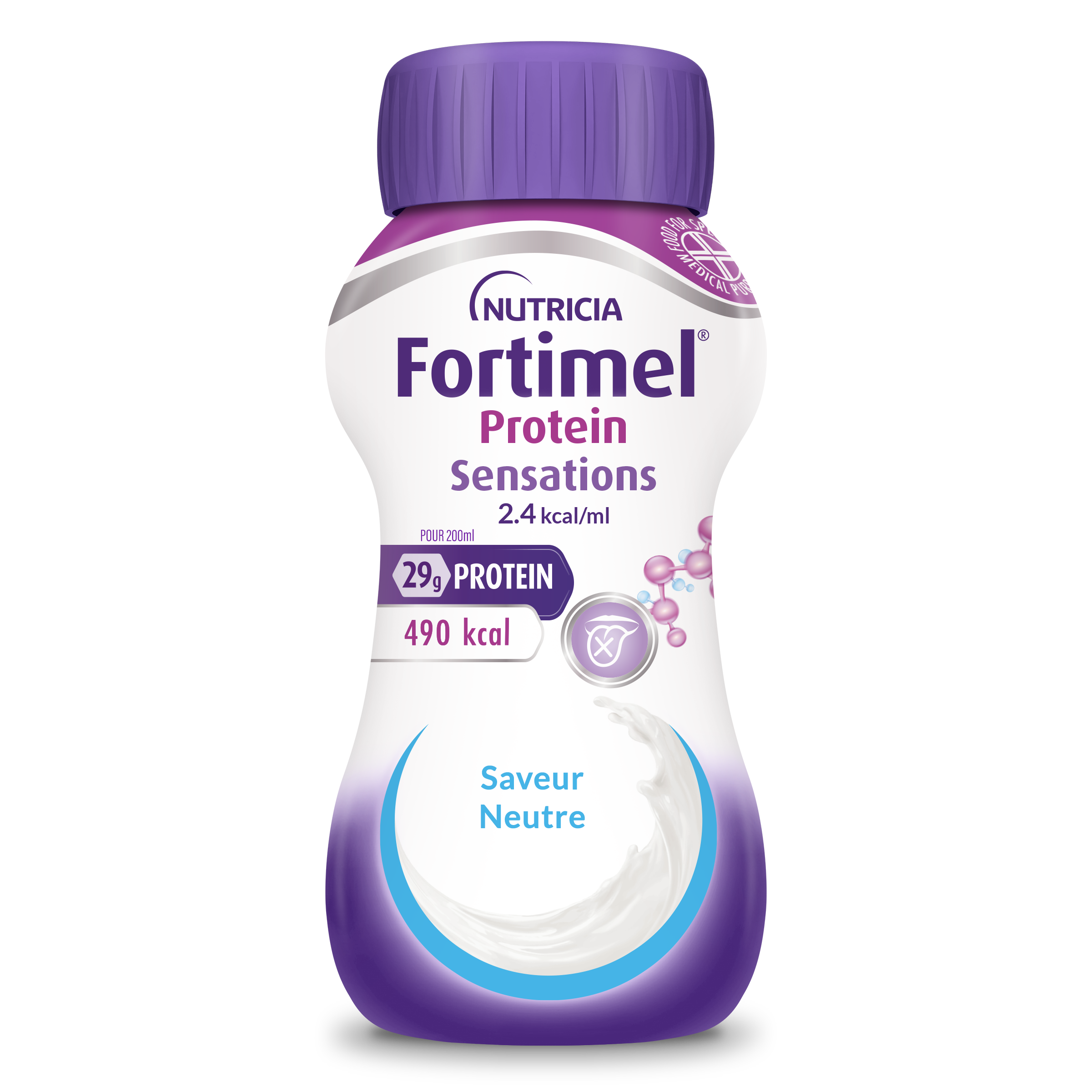 Fortimel® Protein Sensations 2.4kcal/ml est un complément nutritionnel oral hyperénergétique et hyperprotéiné.