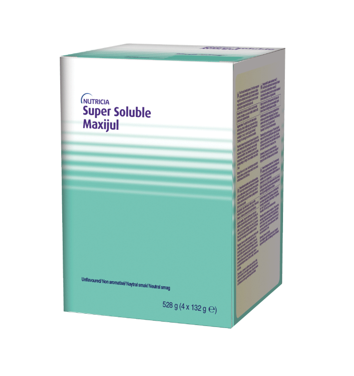 Le dosage doit être déterminé exclusivement par le médecin et dépend de l’âge, du poids et de l’état médical du patient.1 cuillère à soupe de MAXIJUL® SUPER SOLUBLE est environ égale à 15 g = 57 kcal. 1 cuillère à café de MAXIJUL® SUPER SOLUBLE est environ égale à 5 g = 19 kcal.