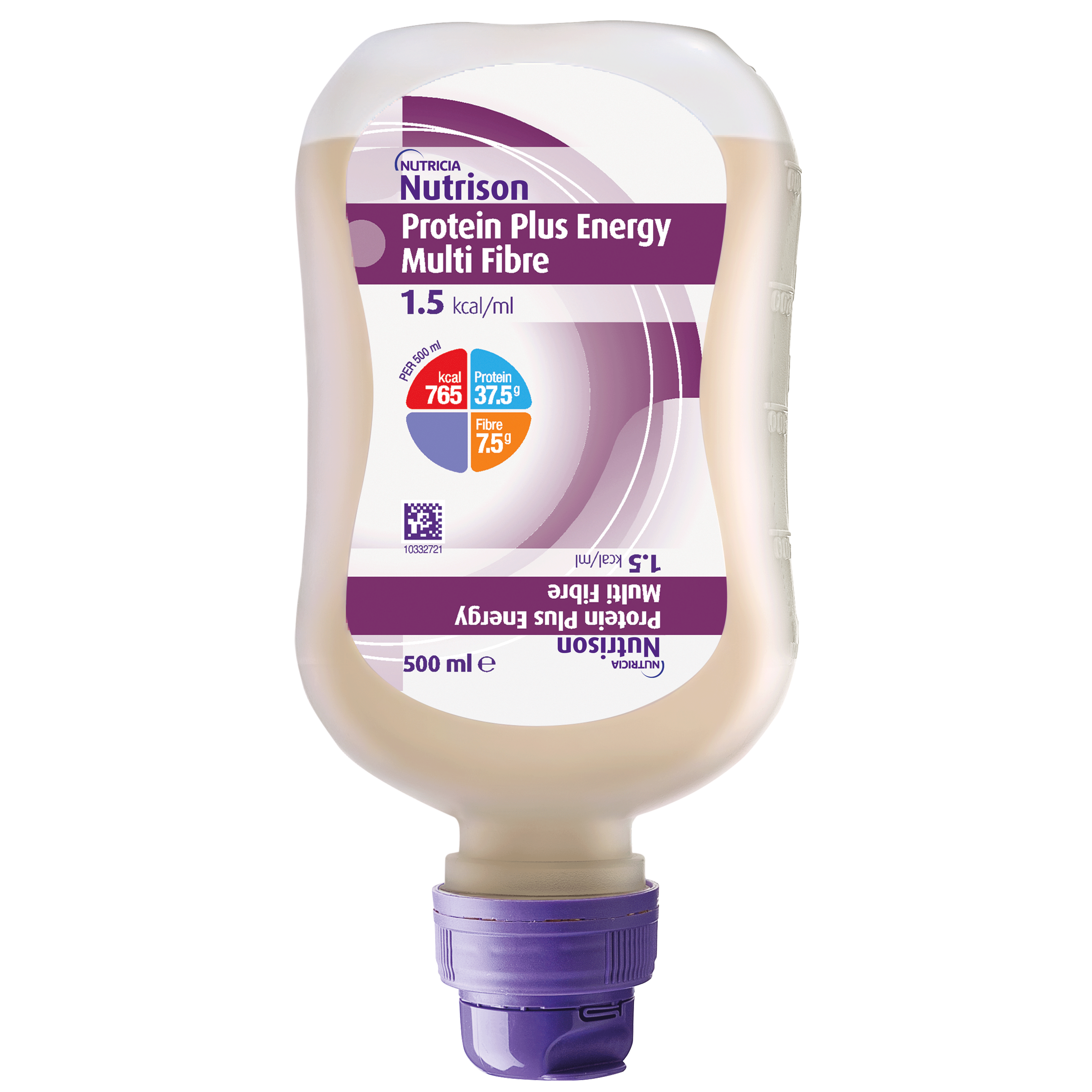 Pour les besoins nutritionnels en cas de dénutrition associée à une maladie. Alimentation par sonde, complète, hyperprotidique et hyperénergétique, avec fibres, prête à l'emploi. Sans gluten et sans lactose.